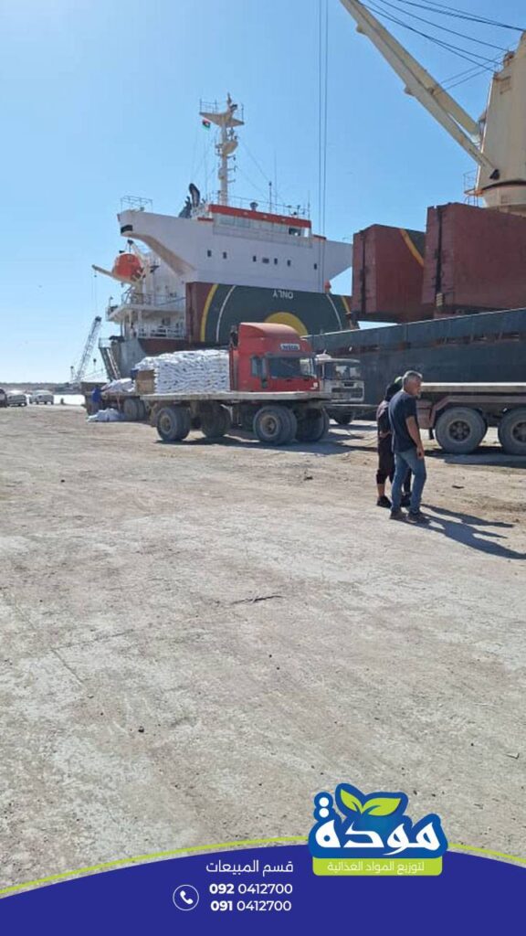 تُواصل الباخرة ABK TIGER عمليات تفريغ شحنتها في ميناء بنغازي، والمحمّلة بـ شحنة من السكر الأبيض عالي الجودة