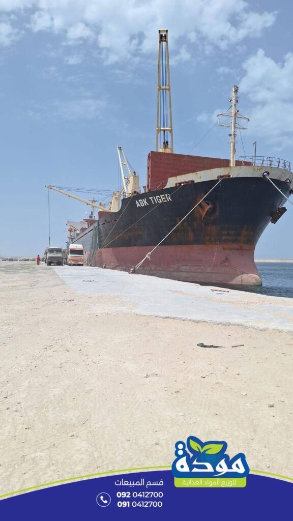 13 مايو 2025 م تُواصل الباخرة ABK TIGER عمليات تفريغ شحنتها في ميناء بنغازي، والمحمّلة بـ شحنة من السكر الأبيض عالي الجودة يسرّنا في شركة مودة لاستيراد وتوزيع المواد الغذائية أن نُعلن عن توفر الكمية قريبًا لتجار الجملة وبأسعار منافسة لضمان حصتكم من الشحنة، يمكنكم الحجز المسبق عبر الأرقام التالية: الجبل الأخضر – وردامة 0924041053 […]